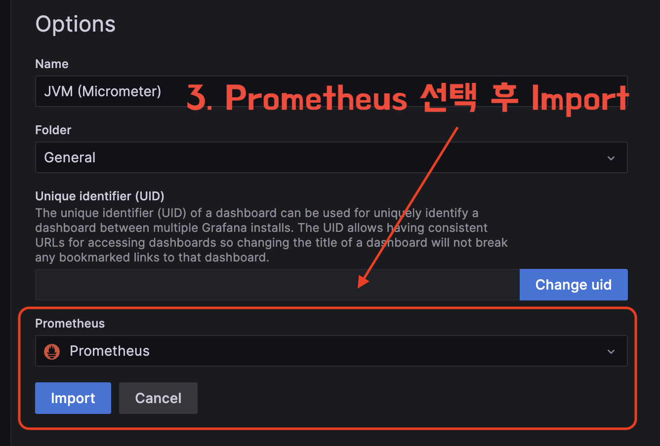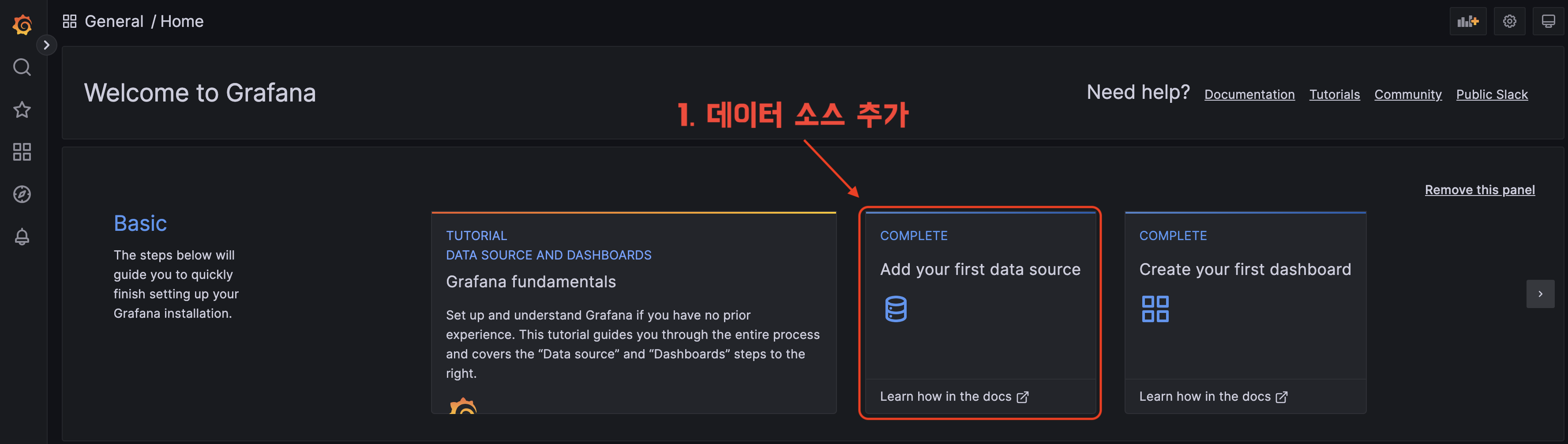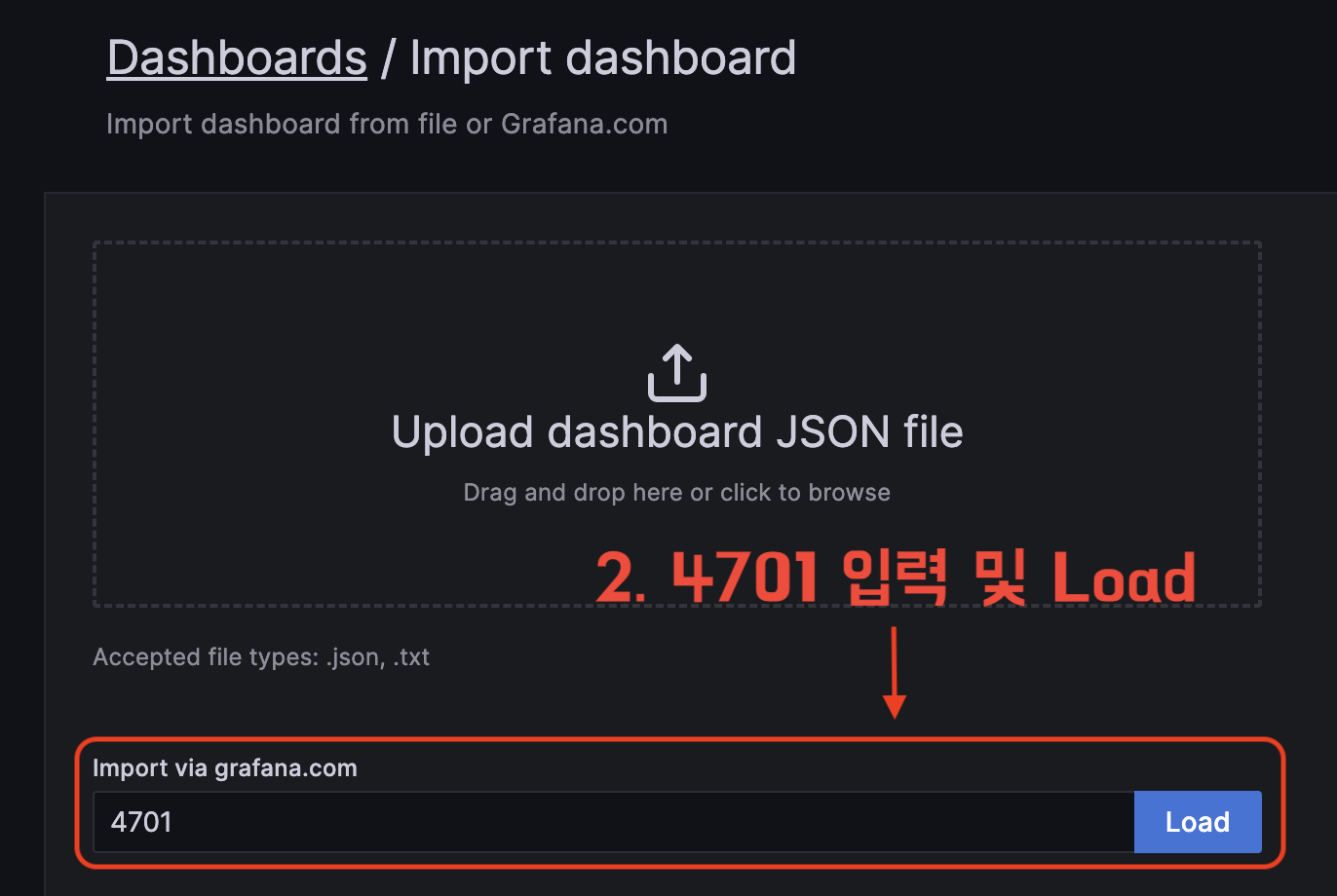 그라파나에서 메트릭 데이터를 시각화하기 위해서는 2가지 설정이 필요하다.